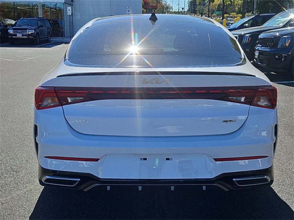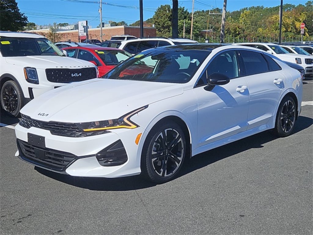 Experience sporty style and advanced performance with this Kia Certified 2023 Kia K5 GT-Line, offering just 25,367 miles, available now at Kia of North Danvers, your employee-owned dealership proudly serving Danvers, Peabody, Salem, and Essex County. Backed by the Kia Certified Pre-Owned program, this sedan has passed a 165-point inspection and includes a 10-year/100,000-mile powertrain warranty plus 1-year/12,000-mile Platinum comprehensive coverage for peace of mind. Powered by a turbocharged 1.6L 4-cylinder engine, the K5 GT-Line delivers responsive performance while turning heads with its aggressive styling, LED lighting, and 18-inch alloy wheels. Inside, enjoy a sport-inspired interior with leather seating, a large touchscreen with Apple CarPlay and Android Auto, dual-zone climate control, and advanced driver-assist features. Perfect for North Shore commutes or spirited drives across Essex County, the Certified K5 GT-Line combines performance, technology, and style in one dynamic sedan. Stock #: 1011A