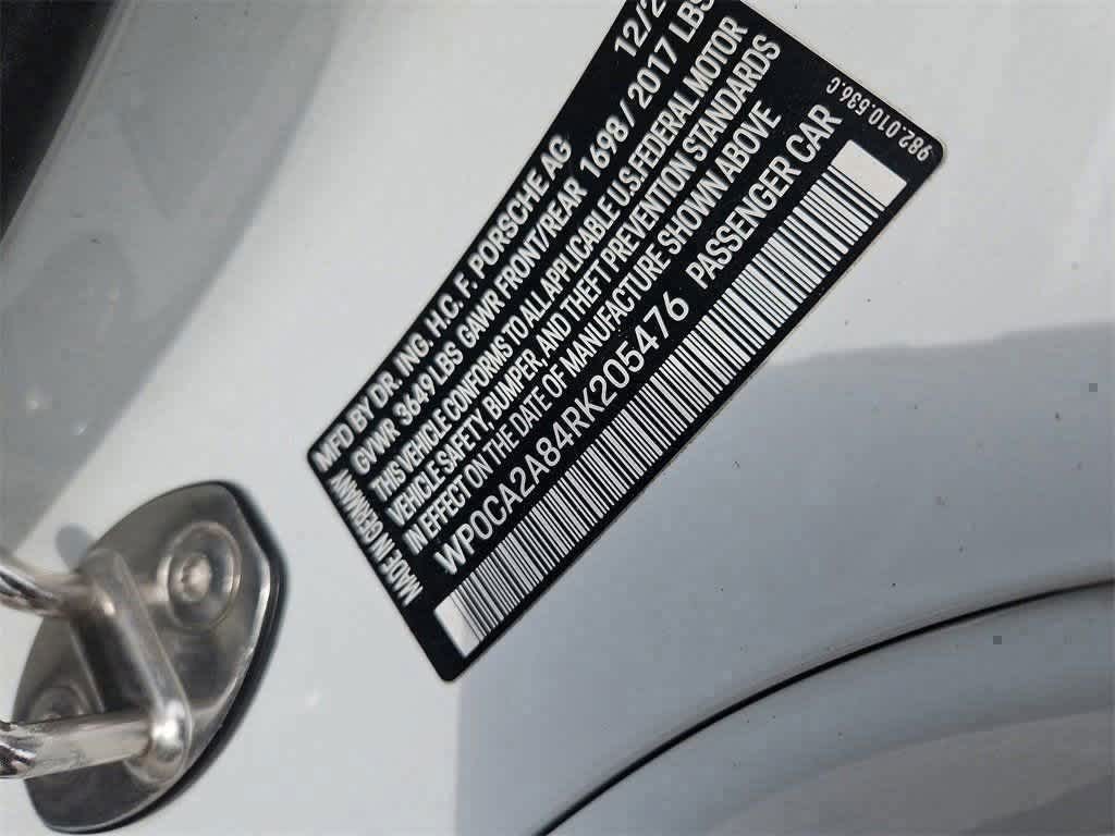 Leather Seats, Heated Driver Seat, Back-Up Camera, Satellite Radio, iPod/MP3 Input, Bluetooth®, Aluminum Wheels, Dual Zone A/C, Smart Device Integration, Apple CarPlay® Rear Spoiler, MP3 Player, Keyless Entry, Rollover Protection System. Serviced here, Non-Smoker vehicle, MANUAL! Amazing spec! White 2024 Porsche 718 Boxster 2.0L Turbocharged 6-Speed Manual RWD AG Interior in Black 0Q White PL2 Premium Package 489 Heated Multifunction Steering Wheel 541 Ventilated Seats 715 Power Folding Exterior Mirrors incl. Courtesy Lighting 457 Lane Change Assist (LCA) 625 Porsche Entry & Drive 630 Light Design Package 581 Luggage Net in Passenger Footwell 546 Supplemental Safety Bars in Exterior Color 494 718 Logo on Rear in High Gloss Black XYB Exclusive Design Fuel Cap Porsche 718 Boxster with White exterior and Black interior features a 4 Cylinder Engine with 300 HP at 6500 RPM*.