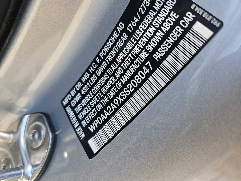 Vehicles must pass an extensive 111-point checklist and inspection, 2 Year/Unlimited Mile Warranty from the date of sale, or when New vehicle warranty has expired, Balance of original 4-year/50,000-mile new car warranty, $0 Deductible for warranty repairs, transferable to subsequent owners, All work done by Porsche-trained technicians, only genuine Porsche parts are used in reconditioning, 24/7 Roadside Assistance is included during the Certified Warranty period, Trip-Interruption Services Spotless