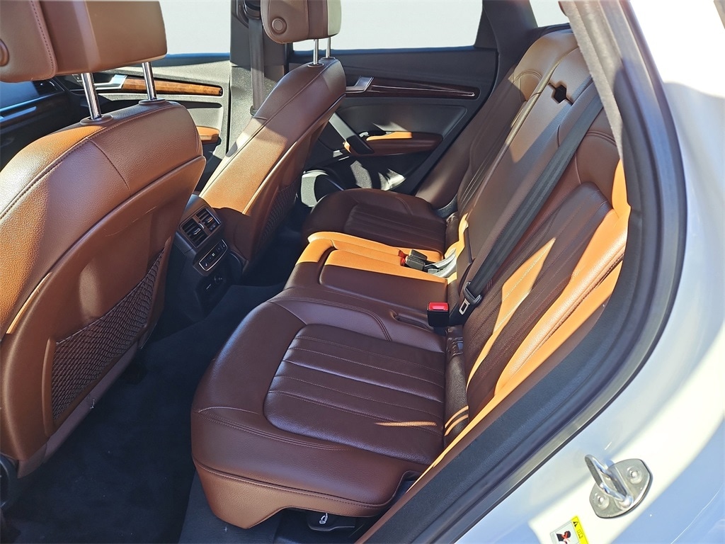Q5 Prestige with Warm Weather package (Sport Seat both front seats identical with cool ventilation). Riding on air. There is no other way to put it. The sport seats difference other than cooling is “wings” that hold your butt and back in place, a 24 position electric adjustment on BOTH identical front seats with thigh support extenders, excellent for a couple with very bad backs. Power: watch out for fishtailing as you can feel G forces when accelerating, if you want. When researching a replacement for our sloppy 2017 Pilot I noticed most owners of other new vehicles in the south were complaining about AC unable to keep up with the Florida, Texas and desert heats. No problem here, the Q5 has more cool air than needed here at 5200’ in the sunny July southwest desert. Instrumentation is terrific with heads up display, maps and routing directly in front of the driver. (What is more ridiculous than the cars that put the map in the center stack and aim it straight to the rear of the car? Who is sitting on the shift to look forward at the map?) Moving on, the interior materials scream quality. Plenty of rear legroom for a knee replacement patient and headroom not a problem anywhere. Rear seats recline a couple inches. Owners manual very well written with detail. You can spend an evening laughing hysterically at the index though. Looking to program the garage door opener? Look in a subcategory under “O”, “Open and Close”! It goes on, and kept us looking up things just to laugh at where they are. Summarizing: most comfortable luxurious road rocket I’ve ever owned.