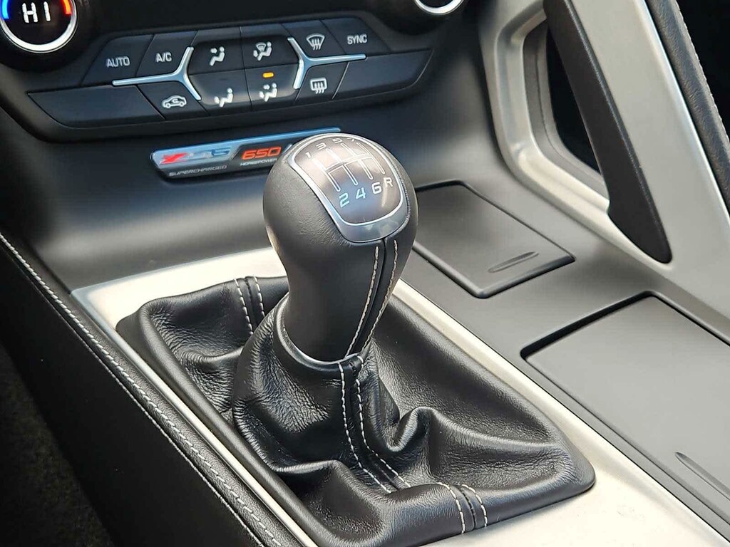 WHEELS, Z06 CHROME ALUMINUM 19 x 10 (48.3 cm x 25.4 cm) front and 20 x 12 (50.8 cm x 30.48 cm) rear, ROOF PANEL, 1-PIECE TRANSPARENT, REMOVABLE, REAR AXLE, 3.42 RATIO, ELECTRONIC LIMITED SLIP (ELSD), AUDIO SYSTEM, CHEVROLET MYLINK RADIO with 8 diagonal color touch-screen, AM/FM stereo with seek-and-scan and digital clock, includes Bluetooth® streaming audio for music and select phones; voice-activated technology for radio and phone; featuring Apple CarPlay® capability for compatible phone (STD), ENGINE, 6.2L (376 CI) SUPERCHARGED V8 DI (650 hp [485 kW] @ 6400 rpm, 650 lb-ft of torque [878 N-m] @ 3600 rpm) (STD), TRANSMISSION, 7-SPEED MANUAL with Active Rev Matching (STD).