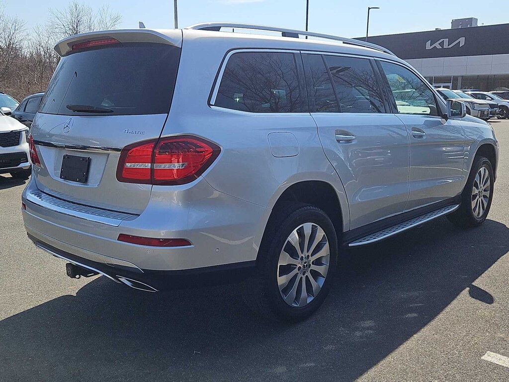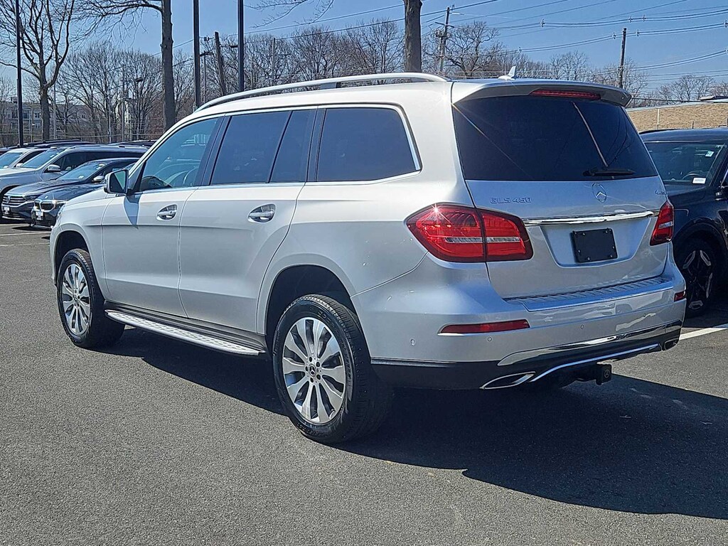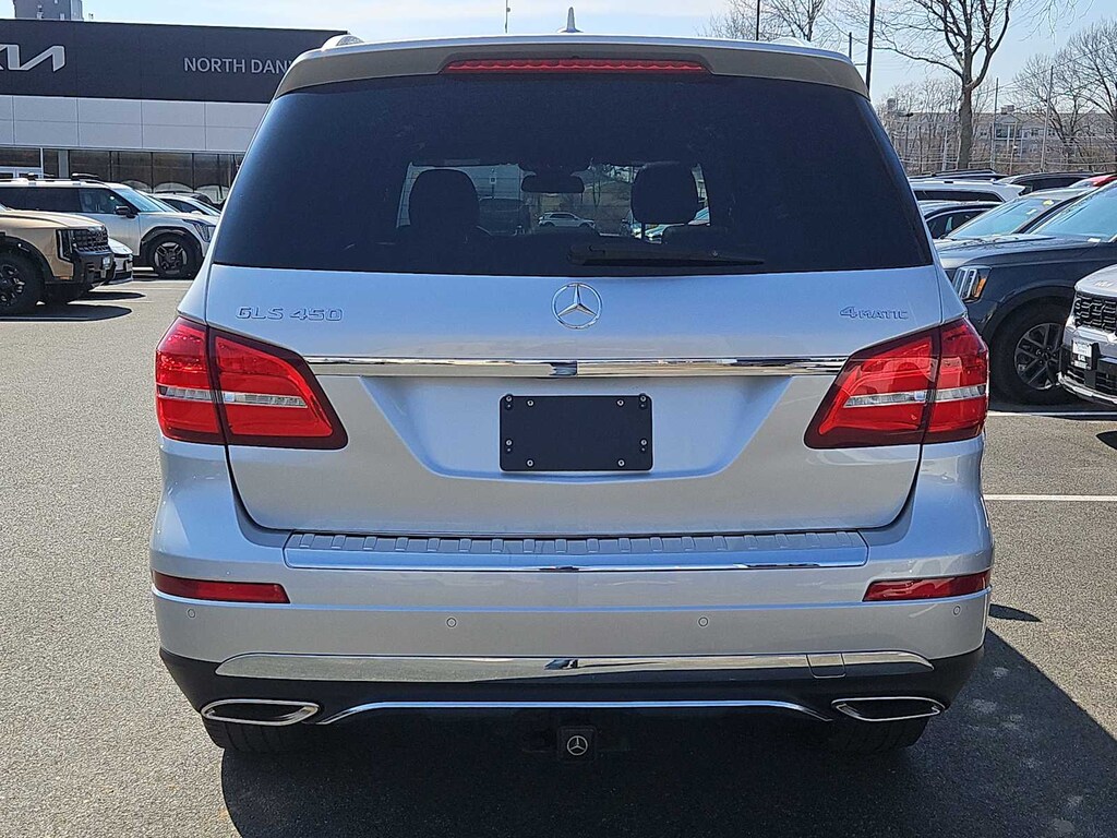 Third Row Seat, Full-Time 4MATIC® All-Wheel, Power Liftgate, Back-Up Camera, Turbocharged, iPod/MP3 Input, Onboard Communications System, Remote Engine Start. Rear Spoiler, Remote Trunk Release, Privacy Glass, Steering Wheel Controls. Non-Smoker vehicle Mercedes-Benz GLS 450 with Iridium Silver Metallic exterior and Black interior features a V6 Cylinder Engine with 362 HP at 5500 RPM*.